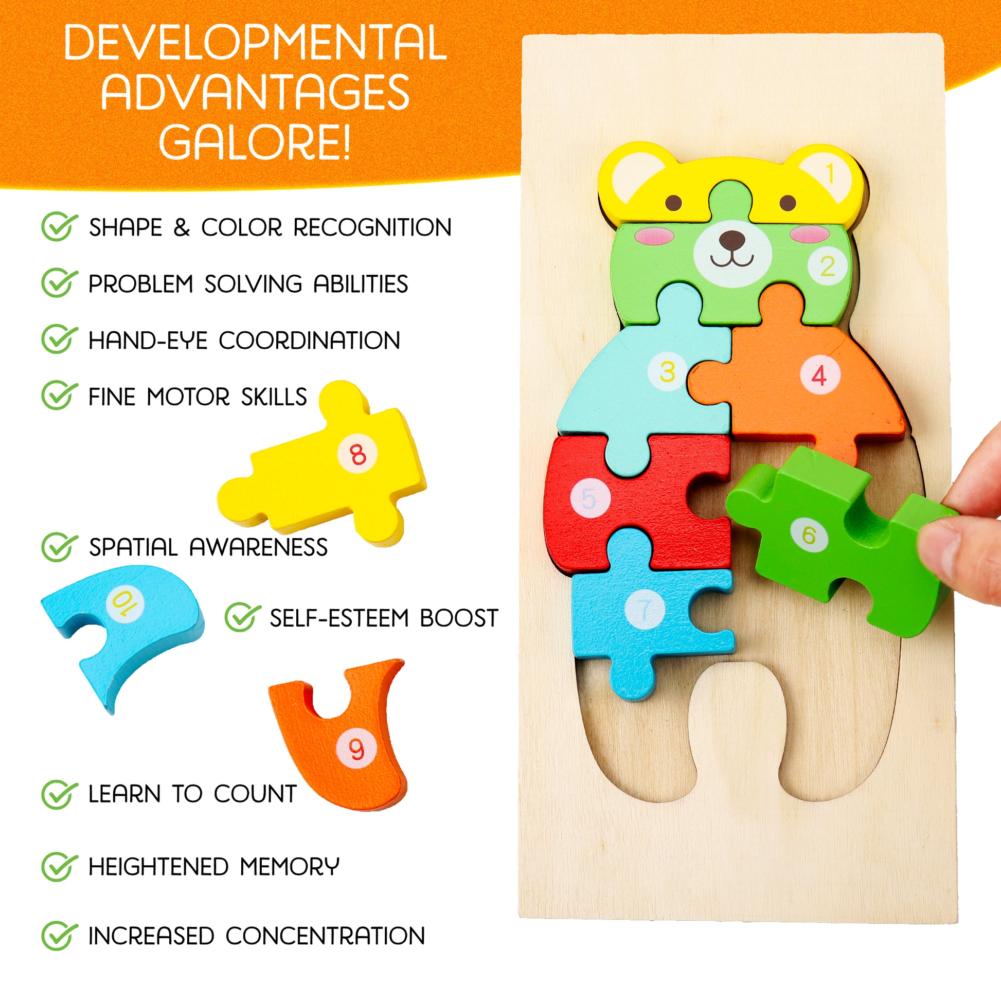 - Builds early number skills and spatial awareness