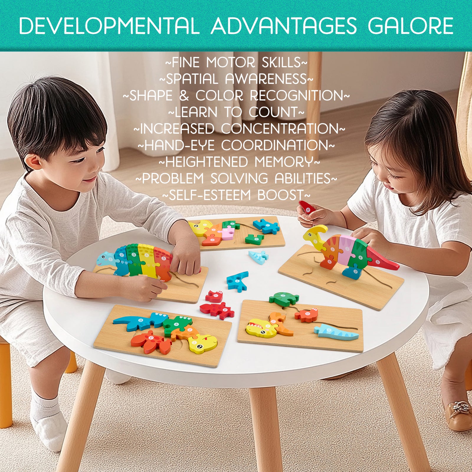 5-Pack Dinosaur Wooden Puzzles – Toddler Puzzle Set Featuring T-Rex, Triceratops & More